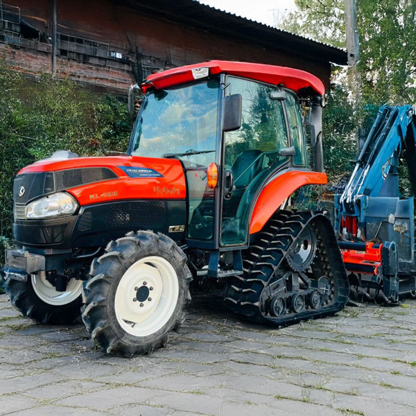 「KL48Z」はコンパクトユーティリティトラクターで、48馬力の「V2403」型4気筒ディーゼルエンジンを搭載。無段変速機構「Dual Drive CVT」により、3レンジで無限の前進・後進速度調整が可能なため、作業内容に応じた最適な運転が可能です。